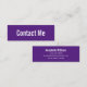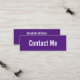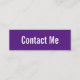 Ce mini carte de visite royal violet dit "contactez-moi" sur le devant du carte de visite. L'arrière contient quatre lignes de texte noir pour votre nom et vos coordonnées, telles que votre numéro de téléphone, votre adresse e-mail et/ou votre adresse de médias sociaux. Tout le texte peut être modifié ou supprimé.