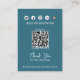 Carte de présentation de bijoux QR sociale feuille de couleur sarcelle foncée : Améliorez la sophistication de votre marque avec ces cartes de présentation de bijoux élégantes. Dotées d'un design botanique contemporain dans une palette de couleurs pastel sarcelle foncée, ces cartes sont un choix parfait pour les boutiques de mode ciblant une clientèle féminine. Votre logo de marque occupe la place centrale au sommet de la carte. Les cercles prévus pour les boucles d'oreilles et les colliers peuvent être personnalisés selon votre vision de design. L'avant de la carte arbore un contour raffiné de feuilles botaniques vertes, dégageant un charme subtil. Retournez la carte pour découvrir votre portée en ligne (détails sur les médias sociaux/site web) via un code QR, améliorant ainsi l'interaction avec les clients. Terminez par un message de remerciement sincère ou un slogan distinctif à la base de