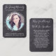 Cartes de prières funéraires Rustiques de Chalkboard Sympathy. Cette simple carte de prière commémorative présente un design de tableau de bord rustique. Avant "In Loving Memory" Personnalisez cette carte de prière funéraire commémorative avec vos proches photo, nom & dates, et sentiment. Retour ~ Poème 'Puissiez-vous toujours marcher dans Sunshine', qui peut être personnalisé, s'il vous plaît tendre la main si vous voulez un design avec un poème spécifique autre que. Cette carte de prière commémorative sera un souvenir précieux, pour les services funéraires et la célébration de la vie. DROIT D'AUTEUR © 2020 Judy Burrows, Black Dog Art - Tous droits réservés. Carte de prière funéraire Rustique personnalisée