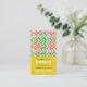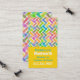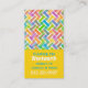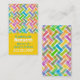 Carte de visite de réseau maman moderne et coloré, réalisé dans un style vertical, avec un arrière - plan jaune. Graphiques de couches colorées d'un motif chevron, décorent le haut, de la carte, avec texte personnalisé vert et blanc, ci-dessous, prêt à personnaliser. Grande carte à distribuer à d'autres mères pour arranger des baby-sitting, jouer des dates, des fêtes et plus encore.
