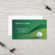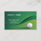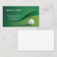 Cette carte de visite professionnelle est présentée sur un fond imprimé lié au golf.