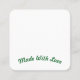 Ces cartes carrés sont parfaites pour les petites boucles d'oreilles ou les clous. Vos belles boucles d'oreilles sont encadrées de feuilles d'aquarelle douce. Gardez le message "Fabriqué avec amour" sur le dos ou customisez avec vous. Pour fixer les boucles d'oreilles, percutez un trou avec une poignée ou une épingle pour accrocher les boucles d'oreilles. Je recommande l'option papier mat, car le semi-brillant peut gratter.