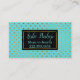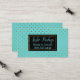 Carte réseau de maman chic faite en bleu turquoise avec motif à pois en or. Une zone de texte en noir et or, à l'avant de la carte, a du texte de couleur turquoise prêt à être personnalisé. Idéal pour rester en contact avec d'autres mamans et organiser des dates de jeu, des fêtes d'anniversaire et des coops de baby sitting.