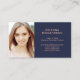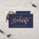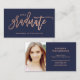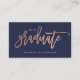 Personnalisez ces cartes élégantes et à la mode d'insertion d'obtention du diplôme avec votre photo personnelle, plus tous votre information de contact et liens sociaux de médias. L'avant de la carte comporte le mot "diplômé" dans la typographie rose d'or de faux moderne sur un arrière - plan de bleu marine.