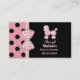 Carte mignonne de mise en réseau de maman faite à un arrière-plan noir, du côté droit, et un rose avec le pois noir, sur l'aile gauche et le dos. Des graphiques d'une verticale fonctionnante de ruban rose et blanc de guingan entre les deux milieux est décorés d'un arc de guingan. Un caniche rose semblant pelucheux adorable décore le côté en haut à droite de la carte, avec le texte rose fait sur commande sous lui. Personnalisez cette carte d'amusement comme grande manière de rester en contact avec d'autres mamans pour s'charger des parties, des dates de jeu, et de la séance de bébé.