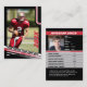 Voici l'American Football Trading Card, un must pour les passionnés du gridiron ! Faites la fierté de l'équipe avec notre modèle personnalisable, qui se vante des couleurs emblématiques du rouge, du blanc et du noir qui symbolisent le coeur du football américain. Sur le devant, personnalisez votre carte avec le nom de l'équipe, le nom complet du joueur, sa position et son numéro de maillot, assurant un hommage unique à votre athlète favori. Retournez à l'arrière, où les statistiques essentielles prennent vie : de la date de naissance, la ville et l'état à la taille, le poids et le lancer de préférence, chaque détail ajoute de la profondeur à l'histoire du joueur. Plongez dans la performance du joueur avec des mesures telles que les jeux joués, les tentatives de passage, les compléments, le total des verges jetés, les touchdowns et les interceptions. Conçu avec une police sans serif dynamique, cette carte capte l'essence de l'énergie et de l'excitation du football tout en maintenant une esthétique moderne et élégante. Que vous fassiez la commémoration d'une saison exceptionnelle, que vous fassiez l'honneur d'un joueur bien-aimé ou que vous fêtiez une occasion spéciale comme la nuit haute, notre carte de football est l'ajout parfait à toute collection. Possédez un morceau d'histoire du sport aujourd'hui avec notre American Football Trading Card personnalisable - l'ultime hommage au jeu et à ses héros.