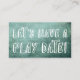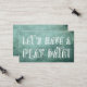 En remplissant la majeure partie de l'avant de cette carte, dans une police noire ouverte, croustillante et ludique, une superposition graphique de typographie dit : "Ayons une date de jeu !" L'arrière - plan des deux côtés a été couvert d'une image arrière - plan grondée, désespérée, rustique, dans les tons verts. Des champs de modèle ont été installés pour vos détails personnels sur le dos, en utilisant une police sans-serif casquette agréable. Vous pouvez modifier la police ainsi que les tailles des mots si vous le souhaitez... il vous suffit de cliquer pour une personnalisation plus poussée pour accéder aux champs d'édition. Tous les détails ont été ajoutés séparément et laissés déverrouillés pour vous donner un contrôle de conception maximum. N'hésitez pas à communiquer avec nous si vous avez besoin d'aide. // 21 //