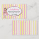 Télécarte de date du jeu de la fille douce, faite à un arrière-plan de rose, de jaune, et blanc de motif rayé. Un secteur ovale blanc des textes, au milieu, est décoré d'une jante rose et des graphiques mignons de pays, d'une princesse de petite fille, tenant une grenouille. Personnalisez le texte pour vous-même, comme carte de maman, ou pour votre enfant. Grande manière de rester en contact avec d'autres mamans et d'arranger des dates de jeu, des fêtes d'anniversaire, et des cages se reposantes de bébé.
