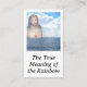 Le design avant présente la belle image du Sacré-Coeur de Jésus dans une frontière ovale surplombant un arc-en-ciel au-dessus des eaux. Les mots "Le vrai sens de l'arc-en-ciel" sont affichés ci-dessous. Reverse présente les paroles de Notre Seigneur sur le sens de l'arc-en-ciel comme son alliance avec le monde. Dieu a promis que l'arc-en-ciel est le signe de Sa promesse qu'Il ne détruira plus jamais toute la terre par un déluge. L'arc-en-ciel n'a RIEN à voir avec le péché. Il n'y a jamais le temps d'être fier de nos péchés. Tout ce qui va à l'encontre de la volonté de Dieu est pécheur. Reprenons donc l'arc-en-ciel et faisons la promotion de son vrai sens, établi par Dieu. Utilisez ces cartes pour aider à diffuser Sa promesse!