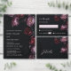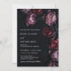 This elegant dark moody floral wedding invitation features purple and red peony flowers on a black background. Dark romantic aesthetic wedding invitation.