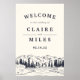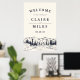 Bienvenue à vos invités dans votre mariage rustique, boisé ou de montagne avec notre affiche Mountain Sketch, avec une illustration esquissée de sommets de montagne, de pins et d'une rivière qui coule. Ajoutez vos noms, votre date de mariage et le texte d'accueil personnalisé en utilisant les champs fournis.