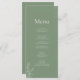 This dark sage green wedding menu features soft ivory typography and delicate botanical line art for an elegant, modern look. Designed to coordinate with the matching dark sage invitation and Save the Date, this menu is part of the sage monochrome wedding collection. Customize the courses and details to perfectly suit your reception. Ideal for evening, boho, garden, woodland, and modern weddings.
