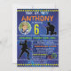 Un design amusant et bleu grunge pour la prochaine fête inspirée de Nerf Wars de votre enfant. Cette invitation a de la place pour une photo de votre enfant. Avec des fléchettes volantes et des soldats tenant des blasseurs. Cet invitation avant et arrière impressionne vos invités. www.invitecentral.com