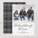 Dashing Through The Snow Christmas Holiday Carte photo de Ricaso - conçu avec une merveilleuse typographie coulante Dashing Through The Snow text à l'avant - .. facile d'ajouter votre propre texte et photo - avec un motif tartan gris à l'arrière - conçu en noir et blanc qui aide à garder votre photographie comme point focal principal