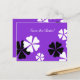Des fleurs noires et blanches sur un arrière - plan violet profond décorent cette élégante carte postale "Save the Date". Le verso est recouvert de lettrage blanc sur le même arrière - plan. Très classe ! Le texte par défaut est pour un 50e anniversaire, mais vous pouvez facilement changer le texte pour le nom, l'âge, la date, l'emplacement, etc. Le timbre postal correspondant est zazzle produit 172416265783483939.Le nom et le étiquette de adresse correspondants sont zazzle produit 106666 41237613375734. Tous droits réservés © 2015 Alan & Marcia Socolik.