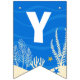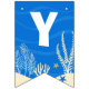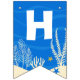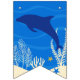 Cette mignonne bannière de fête d'anniversaire sur le thème de la plage présente un bel arrière - plan sous-marin avec un joli corail de mer et un joli dauphin au centre. Décor bleu parfait pour une soirée piscine ou un luau.
