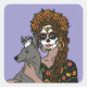 Celebrate the spirit of el Día de los Muertos with this vibrant design featuring a stunning Mexican woman adorned in traditional Day of the Dead makeup with her xolo dog.