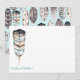 Aquarelle plumes papier à papier à lettres à plat les cartes à plume d'aquarelle moderne dans les tons d'aqua, gris, beige, turquoise et gris fusain et peuvent être personnalisées avec votre nom ou d'autres courtes phrases (comme merci). Les cartes de note retournent à un motif de coordination de plumes sur un arrière - plan aqua. Des enveloppes blanches sont incluses.