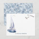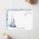 Cette carte de papier à lettres personnalisée et au style nautique chic comprend un yacht et des mouettes en aquarelle. L'envers présente un arrière - plan blanc avec des motifs géométriques en bleu indigo. Vous pouvez trouver des produits correspondants dans mon magasin.