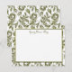 Une carte de notes avec des lettres de script élégantes pour votre nom, dans un cadre doré sur un élégant motif de roses vintages en blanc et d'or sur blanc.