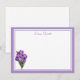 La Carte Flat Note de Nom Personnalisée est affichée en blanc avec un cadre double bordure violet et une belle impression de fleurs de crocus violet. Customisez cette carte et changez votre nom.