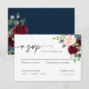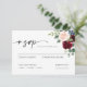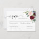 Carte RSVP Boho Burgundy Blush Wedding. Cette Carte est caractérisée par des roses boho bordeaux et rougis et des fleurs avec deux polices de haute classe modernes qui façonnent les tendances des événements festifs actuels et futurs.