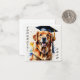 Ce carte pour notes présente une aquarelle illustrant un chien Golden Retriever portant un casquette diplômé. Le texte dit Félicitations ! Grad. Étudiants, collège, lycée