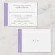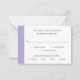 Mini carte RSVP Mariage moderne avec bande violette lavande numérique audacieuse le long du côté gauche. Le modèle est composé d'une police serif classique, d'une police serif moderne et d'un script élégant. Le dos a une bande le long du côté gauche avec votre monogramme. Ce design simple et minimaliste est parfait pour un mariage traditionnel et formel.