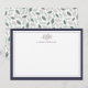 Nos cartes de correspondance personnalisées et élégantes sont parfaites pour votre correspondance de fin d'année ! Un design festif mais élégant présente une bordure bleu minuit et un petit brin de baies de houx sur le dessus, avec votre nom, monogramme ou choix de personnalisation en dessous. Les cartes se retournent sur un motif global de branches de pin, de feuilles vert sauge et de branches de baies.