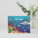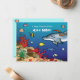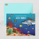 Une adorable représentation illustrée à la main d'une mer d'un bleu profond qui grouille de poissons, d'une baleine, d'un dauphin et d'autres créatures de l'océan. Peinte à la main avec aquarelle, gouache et encre cette invitation donnera le ton parfait pour vos notes de remerciement. Besoin d'aide pour personnaliser ? Contactez-moi à l'adresse info@missNnick.com