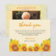 Les funérailles à thème tournesol remercient note est une façon simple de remercier ceux qui vous ont montré du réconfort pendant votre deuil. Cette invitation à plat a des tournesols jaune vif sur l'avant et une option photo sur le dos avec un modèle de remerciement personnalisé.