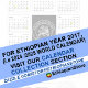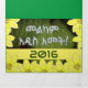 Cette carte souhaite "Bonne Année" en amharique (langue éthiopienne) avec le calendrier éthiopien à l'intérieur. Le calendrier est pour l'année 2016 qui va du 12 septembre 2023 au 10 septembre 2024.