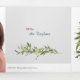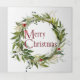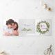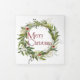 La couverture de cette carte de voeux triplée de Noël a une jolie couronne verte de Noël ornée de baies noires et rouges bleu foncé. Au centre se trouve le texte stylisé "Joyeux Noël". A l'intérieur, il y a des modèles photo sur le premier et le troisième panneau. Le panneau central contient votre texte personnalisé en vert et en rouge dans quatre champs. Le dos contient un autre modèle photo et une branche d'aquarelle verte correspondante. Une élégance simple !