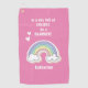 NewParkLane - Cute Personnalisé Kids' Golf Towel, avec un doux arc-en-ciel de licorne, avec une citation inspirante qui enseigne aux enfants qu'il est possible d'être différent / eux-mêmes : "Dans un ciel plein de couleurs, soyez un arc-en-ciel !", contre un arrière - plan rose (la couleur peut facilement être modifiée).