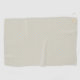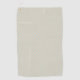 Gros plan d'une serviette à motifs avec un petit motif géométrique en forme de losange en sarcelle et orange sur fond blanc. Un anneau métallique est fixé dans le coin supérieur.