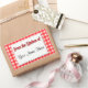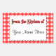 Motif rouge et blanc de rétro pays de plaid des contrôles et des rayures sur les autocollants personnalisables lisant de la cuisine de dans de rétros lettres rouges et noires, avec des lettres de manuscrit pour votre nom sur un napperon de faux. Customisez-le pour changer des polices ou le classement par taille, ajouter des champs ou changer des couleurs d'arrière - plan ou la forme d'étiquette, sauvent même votre conception pour plus tard.