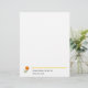 Icône de fleur de Calendula. Petite fleur orange avec ligne horizontale jaune au-dessus de la zone modèle pour nom d'entreprise/adresse/numéro de contact. Des enveloppes coordonnées sont disponibles.