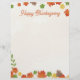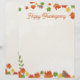 Une en-tête thématique Thanksgiving bordée de feuilles d'automne rouges, dorées, vertes et jaunes, parmi des glands sur un arrière - plan beige clair. Idéal aussi pour les en-têtes de lettres que vous envoyez à la saison d'automne, car le texte peut être modifié pour supprimer la référence à Thanksgiving.