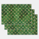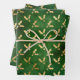 Élégant feuillet vert et or feuille de mistletoe motif cadeau festif Enveloppement Feuilles de papier. Motif de feuille d'or, arrière - plan vert. Idéal pour Noël et les fêtes.