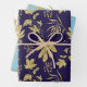 De Papier Cadeau Navy Blanc Vert Feuille D'or Mariage Printanier