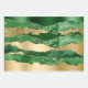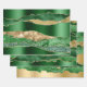 Un trio de feuilles de papier d'emballage avec un éclatant; glam et design élégant comprenant des bandes de parties scintillant brillantes en faux or et vert émeraude disposées horizontalement l'une sur l'autre, ce qui donne l'illusion d'un marbre; plateau de granit ou d'agate. Ce design est idéal pour tout mariage turquoise bleu et or spécial, anniversaire, événement officiel ou fête.