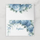 Ajoutez un nom ou un numéro de table à ces charmants porte-noms pliés d'hydrangée bleue couleur aquarelle pour vos tables de mariage ou d'événement. Ces fleurs sont disposées dans un design swag avec des feuilles verts délicats les accusant. Trouvez de l'espace pour ajouter un nom ou des informations à ces cartes selon votre style.