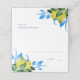 Carte de Place Toscane ou Carte d'Escort design dispose d'une arête de mes citrons d'origine aquarelle peints en jaune vif avec des botaniques bleus et verts. Espace prévu pour le nom de l'invité et le numéro de table. Les cartes sont inversées pour révéler les noms de mariée et de mariée correspondants et la date du mariage. L'intérieur est décoré d'une couleur bleu uni. Conçu pour correspondre au thème Mariage italien Do Tell a Belle. Parfait pour les mariages toscans et de destination méditerranéens. Pour voir le décor de table en citron assorti, visitez www.zazzle.com/dotellabelle Art et design de Victoria Grigaliunas