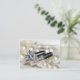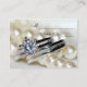 Customisez l'élégante carte Place Mariage Rings and Pearls avec le nom de votre invité et la table à laquelle ils seront assis à votre fête de fiançailles, douche nuptiale ou réception de mariage. Ces élégantes cartes d'escorte personnalisées comportent une photo de près d'une bague ronde en diamant fiançailles et un ensemble de bandes mariages et collier de perle blanche.