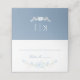 Carte pour la collection de couronnes florales bleues. Le design évoque le printemps et les débuts avec ses teintes pastel. Des fleurs d'aquarelle bleue, des vignes et des feuilles encadrent le texte sur un arrière - plan blanc. Par contre, le dos de la carte est d'un bleu foncé et poussiéreux. Essayez cette conception sur les options élégantes de papier, comme le lin ou la perle. Le papier doux améliorera la délicatesse des fleurs. Parfait pour un jardin ou un mariage du printemps.