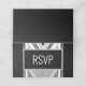 Carte rsvp de la partie de célibataire diagonale noire, grise, métallique rayée. Toute la collection de baccalauréat est super chic et personnalisable. Bonne fête, applaudissements !
