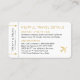 Elégante carte d'embarquement de billets d'avion or ou carte d'escorte avec beaucoup de place pour les messages personnalisés et les informations de navette ou de taxi, un complément parfait à une réception de mariage de destination ou de voyage thème de voyage pour le couple globe-trotter ayant un mariage à l'étranger. REMARQUE DESIGNER : Tout peut être modifié, y compris les couleurs et les polices. Cliquez simplement sur "customiser plus loin" pour utiliser l'éditeur avancé et modifier le modèle comme vous le souhaitez.