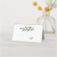 Elégante Carte de Place Winter Greenery. Ce dessin présente une illustration de feuillage vert et or avec des baies rouges en aquarelle sur arrière - plan blanc. Winter Greenery - la verdure hivernale classique qui apporte la joyeuse fête de Noël ou de mariage.