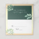 Carte mariage moderne, botanique, élégante or et vert émeraude, avec aquarelle verte et script de calligraphie simple.