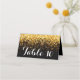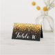 Cette carte de numéro de table mariage éblouissante saura séduire vos invités. Il présente des orbes lumineuses brillantes dorées qui s'estompent vers un arrière - plan noir subtil. Parfait pour un mariage ou un événement élégant et élégant.